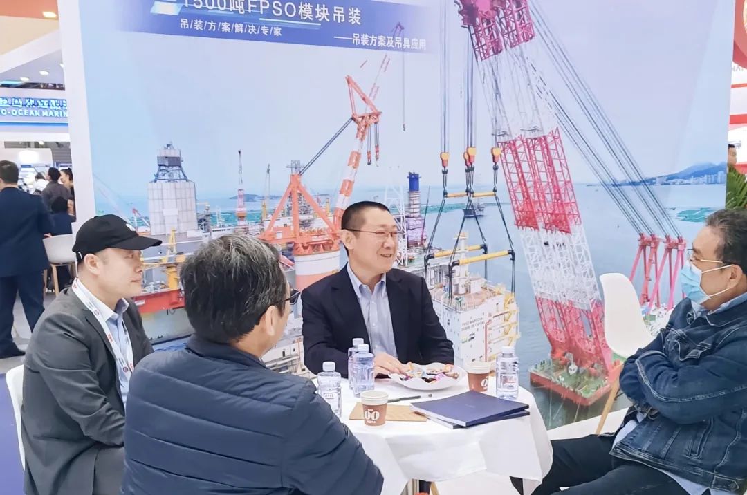 总裁杨超莅临现场指导工作并与客户密切交谈,听取了国内外客户的市场反馈,并与客户交流巨力索具智能化、数字化技术在海洋领域的应用与成就,深层次探讨行业发展趋势与合作方向。