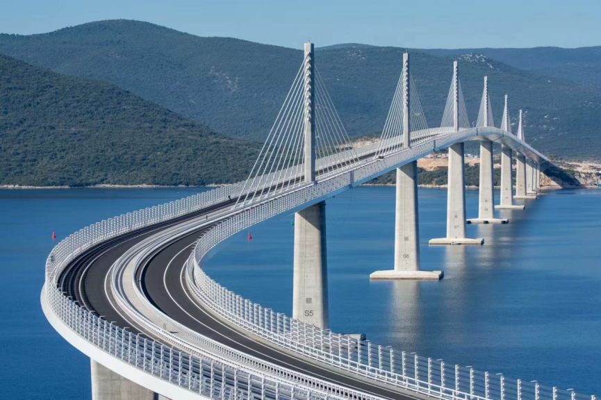 克罗地亚佩列沙茨大桥是连接克罗地亚本土与佩列沙茨半岛的桥梁工程,也是中克两国之间规模最大的基建项目。佩列沙茨大桥为六塔钢箱梁斜拉桥,桥梁全长2440米。项目采用欧洲标准建设,是克罗地亚最大的国家战略工程,巨力索具承接该项目810吨桥面钢箱梁吊具。