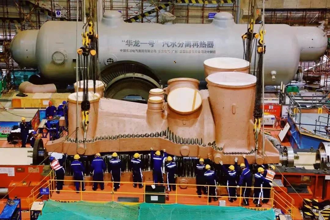 2017年11月28日,首台蒸汽发生器吊装就位。
