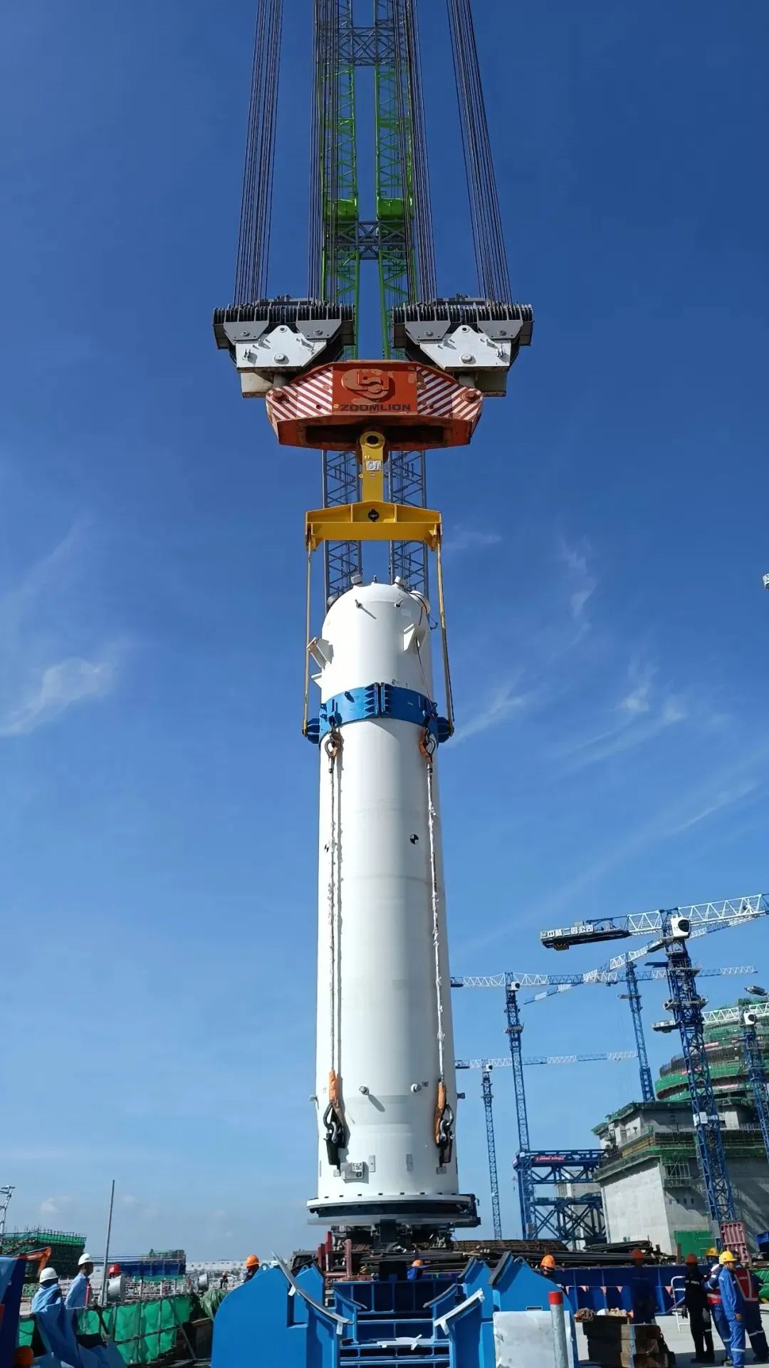 2022年7月,“华龙一号”漳州核电2号机组首台蒸汽发生器(一环路)经过翻转、提升、变幅等一系列既定工序,顺利吊装就位。本次吊装采用“主设备先行引入法”将蒸发器成功引入核岛内部结构,巨力索具核电专用吊具全程保障吊装过程顺利进行,为后续2号机组穹顶吊装创造了有利条件。