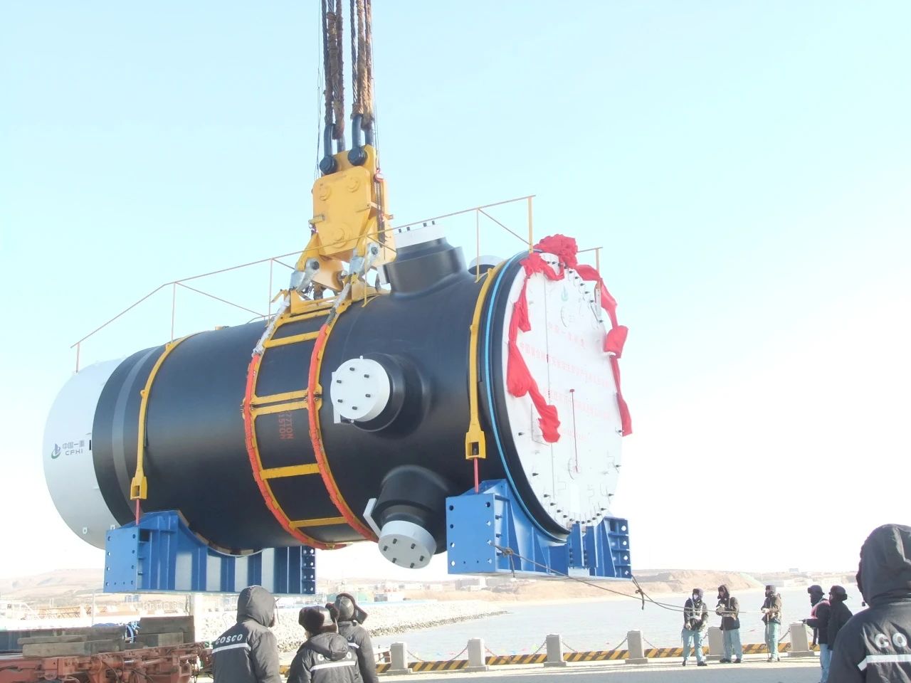 2024年1月,徐大堡核电1号机组CV底封头开始吊装,CV底封头整体呈半椭球形壳体结构,具有重量大、体积大、就位精度高等特点。巨力索具所提供的转接头、分配器、吊索组成成套吊具解决受力问题,并全程配合吊装过程,确保吊装过程稳步进行。