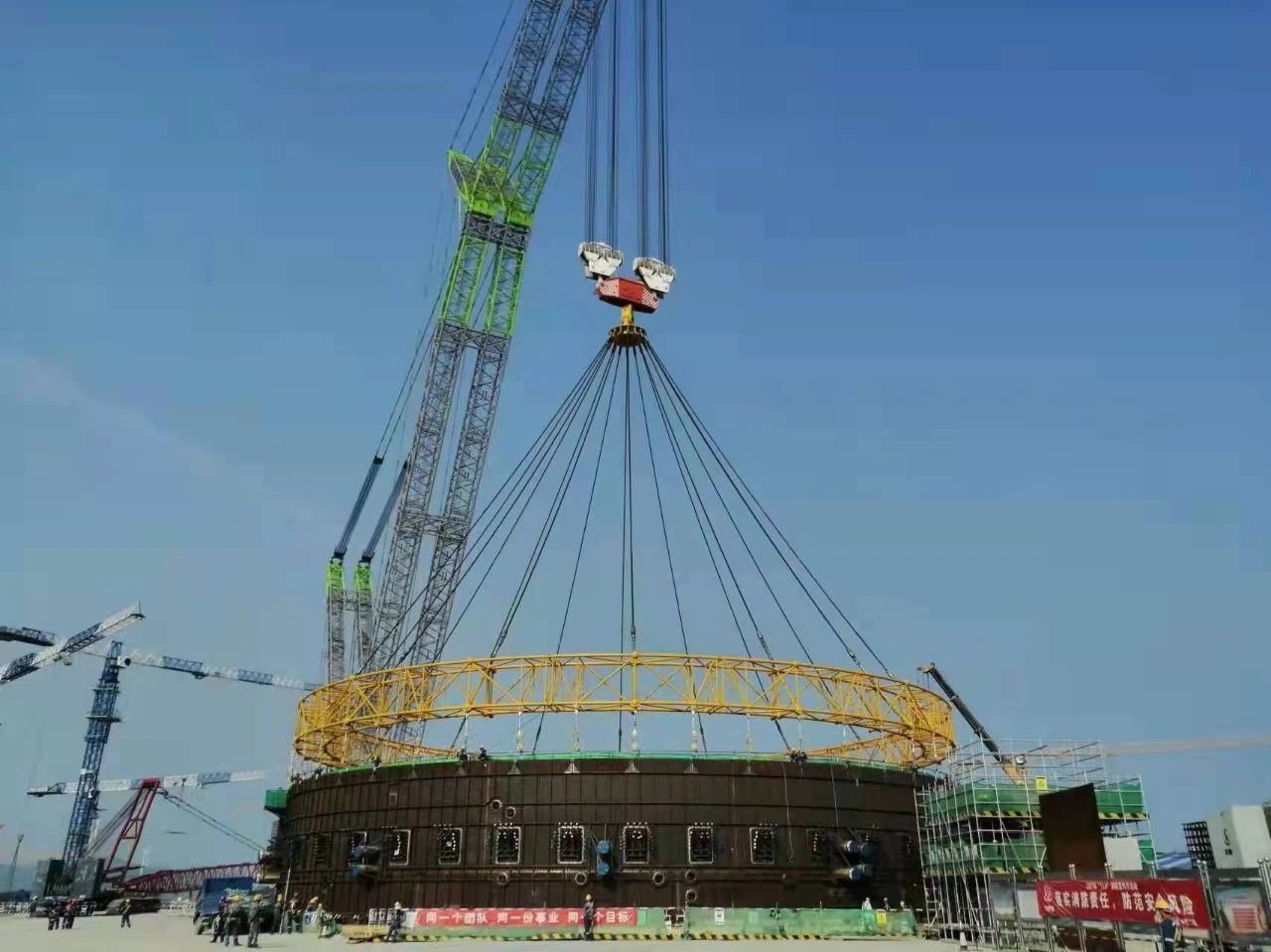 2022年1月,漳州核电2号机组核岛钢衬里模块七吊装成功,巨力索具为该项目提供牛腿模块环形吊具、钢丝绳索具、无接头绳圈等相关配套索具,全程保障吊装环节顺利进行。吊装过程质量安全整体受控,实现了钢衬里筒体、牛腿和次钢平台一体化模块施工,标志着“华龙一号”钢衬里模块化施工又有新突破,开创了国内外核电机组钢衬里全模块化施工建造的先河。