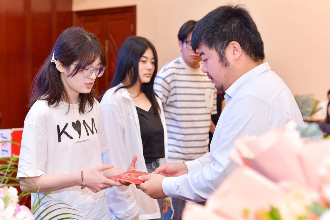 分享会上,杨超向含辛茹苦供子女求学的职工及家属表示崇高的敬意,向金榜题名的职工子女表示热烈的祝贺,他精心的为每位到场的考生准备了两份礼物:一本书籍和一份助学金。表达他对考生的美好祝愿。