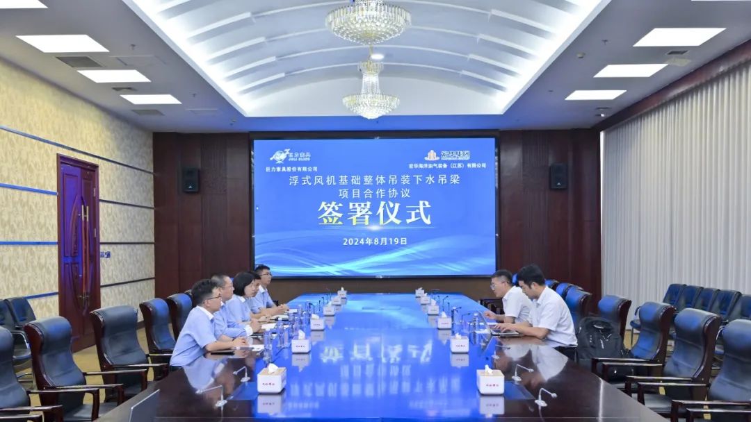 8月19日,巨力索具与宏华海洋油气装备(江苏)有限公司(以下简称宏华海洋)就“浮式风机基础整体吊装下水吊梁”签署项目合作协议。巨力索具常务副总裁李彦英、宏华海洋副总经理吕岩分别代表双方签署协议。巨力索具副总裁张海波、宏华海洋技术副部长李博参加会议。