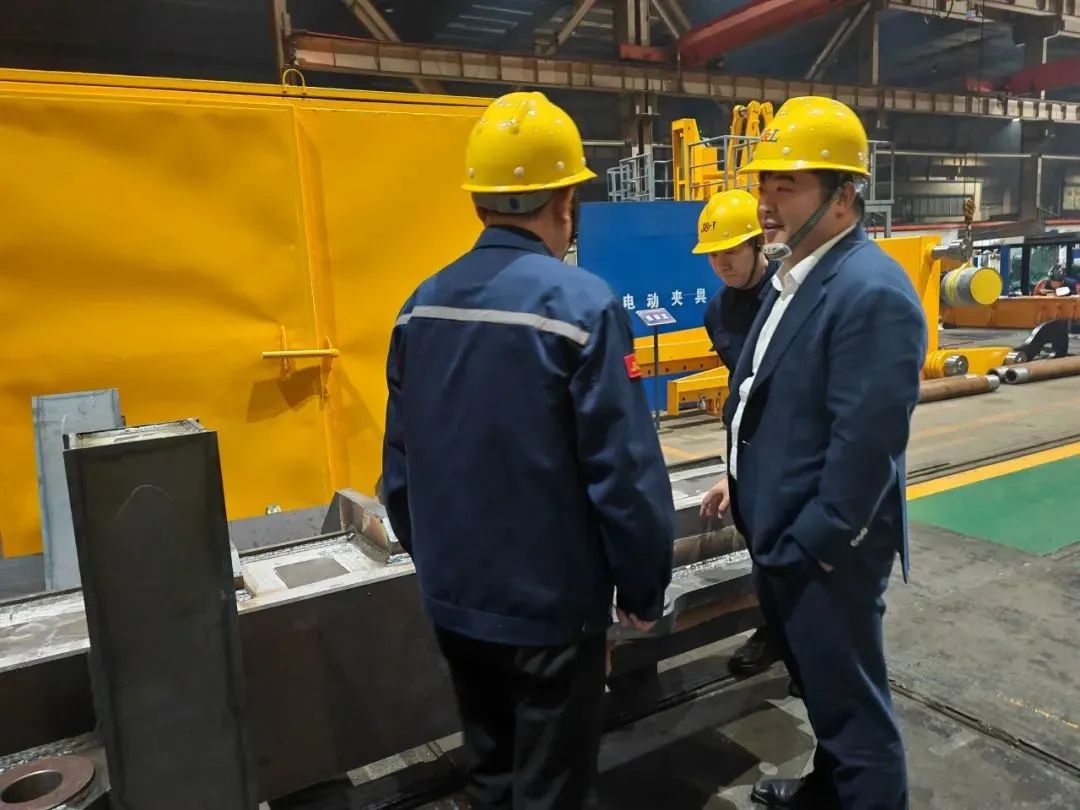 杨超先后来到钢丝绳制造厂、钢拉杆制造厂、冶金结构件制造厂、锻造索具制造厂,深入了解各制造厂现场管理人员安排、场地施工安全标准、生产进度等情况。现场管理人员针对自己所负责的相关工作向杨超逐一汇报,并就施工中所面临的难点疑问,提出了具体的建议和意见。
