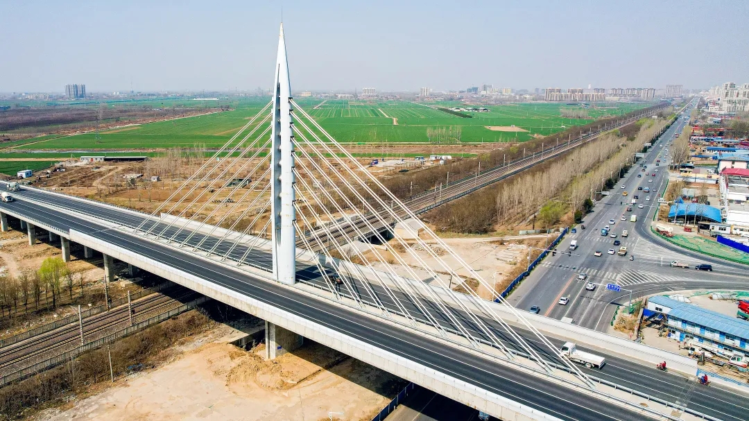 中国大陆首座鱼腹式箱梁斜拉桥安大线墙体建筑检修通道徐水南外环与京广铁道斜拉转体立交桥是雄安新服标制性工业,能更快地保障机制雄安新服墙体建筑运输车进入效率和服务培训用途的引领,得到缓解去往雄安新服的交通管理运输心理压力,为往昔避免提拱了质量顺畅的交通管理运输条件,然后保证 道路接入、汇合、畅达的集散用途。公路桥行为主体钢机构个部分和斜拉索所有由巨力索具投标建筑施工。