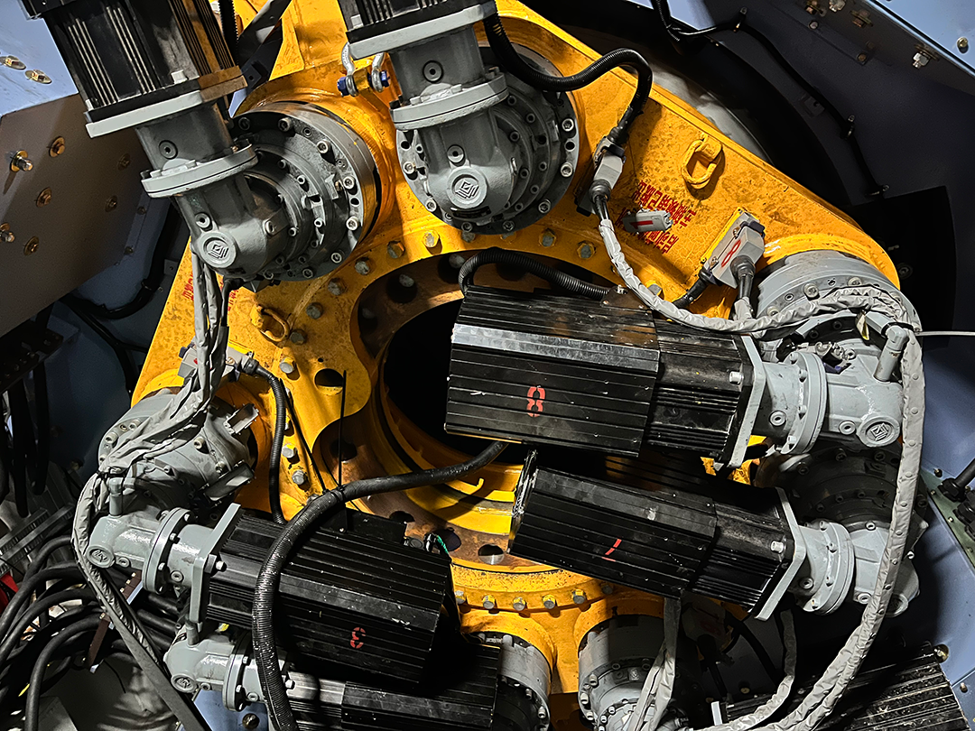 盘车工装组装简单,发货前,盘车主体已经组装完毕,仅需将控制柜和电机电源线按标号连接,即可投入使用,盘车在连接固定好反力臂和刹车盘接口,即可操作盘车。本套盘车工装操作简单快捷,可在40分钟内对风轮进行120°盘车,加快风场作业速度,大大缩短业主安装风机时间,有效降低客户安装成本。