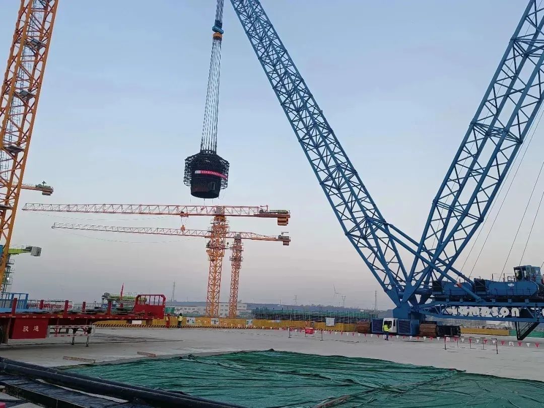 2021年11月18日5时36分,初冬凌晨的徐大堡项目现场已灯火通明,伴随着吊装总指挥“开始吊装”一声令下,2600T履带吊干净利落的完成了起钩、变幅等一系列动作,于2021年11月18日8时36分顺利完成了核岛堆芯竖井的吊装工作,历时3个小时,巨力索具为整个吊装过程提供配套索具,这是徐大堡核电3号机组自开工以来,首次大件吊装,为徐大堡核电3号机组反应堆厂房主体工程及关键路径施工打下了坚实基础。