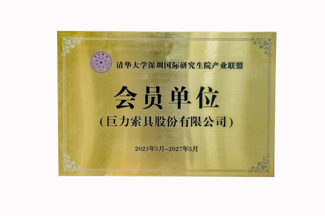 2023年7月31日,巨力索具正式纳入清华大学深圳国际研究生院产业联盟会员单位,双方在巨力索具总部科技中心举行了授牌仪式。
