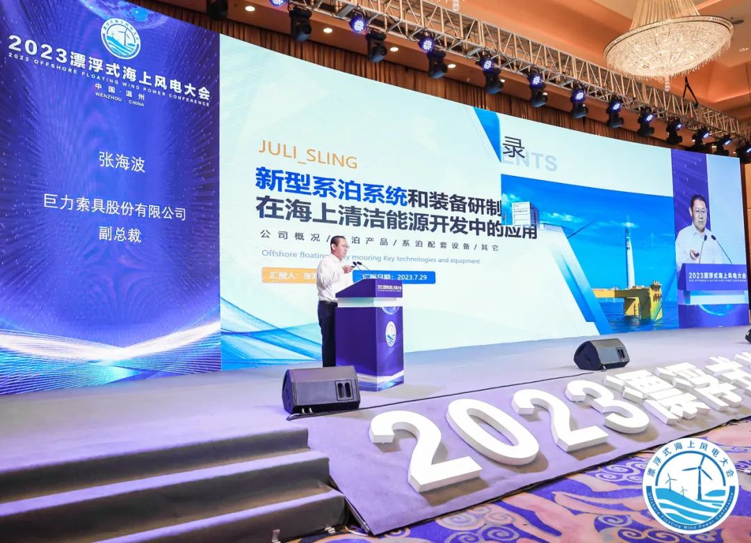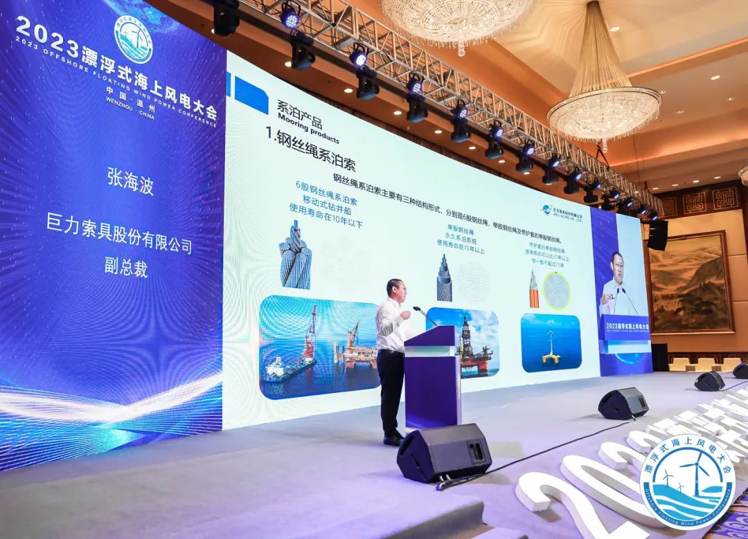 2023年7月28日-29日,温州市人民政府联合中国海洋工程咨询协会海上风电分会、国家风力发电工程技术研究中心等风电重点企事业单位举办的“2023年漂浮式海上风电大会”顺利召开。巨力索具副总裁张海波出席会议并做报告。