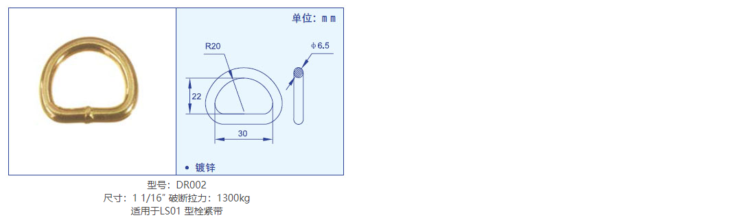 产品型号 适用尺寸 破断拉力(kg) 规格大小(mm) 表 面 适合型号 备注